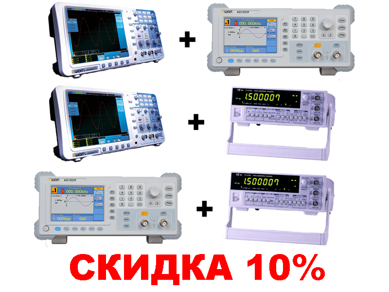 До конца 2013 года объявляется акция на покупку пары приборов: "генератор сигналов + частотомер", "частотомер + осциллограф", "генератор сигналов + осциллограф". При покупке любой вышеперечисленной пары приборов со склада - СКИДКА 10% на КАЖДЫЙ из них!