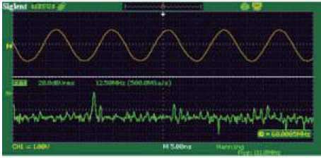 Разделенный дисплей БПФ Прибор оснащен функцией анализа сигналов в частотной области. Осциллограммы сигнала и сигнал БПФ отображаются одновременно на разделенном дисплее, что делает просмотр более наглядным и понятным. |