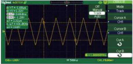 Режим слежения Курсор может автоматически отслеживать сигнал. Регулируя горизонтальное положение курсора при помощи универсального регулятора, вертикальное положение будет изменяться соответственно. |
