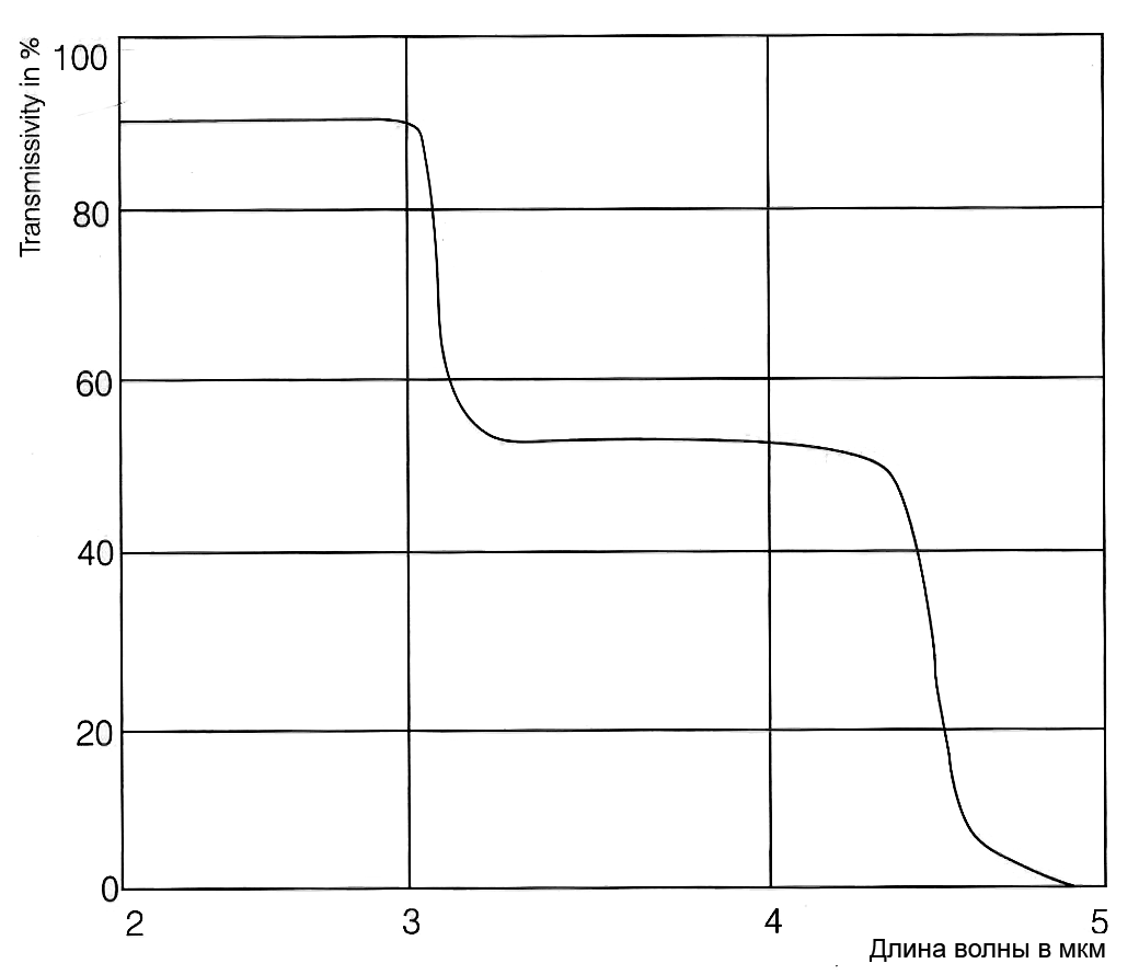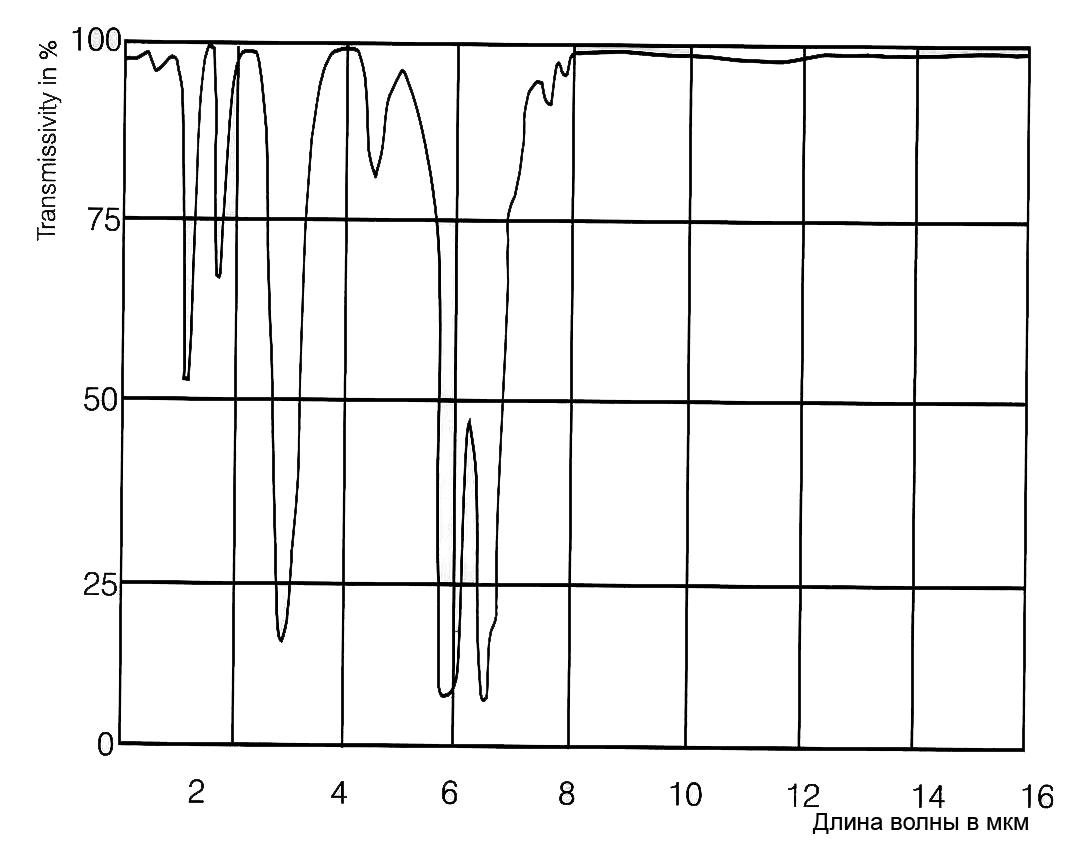 На рисунках видно, что пропускание воздуха очень сильно зависит от длины волны спектра. Сильное поглощение сменяется участками с высоким пропусканием – это так называемые «окна прозрачности». Коэффициент пропускания в длинноволновом диапазоне (8…14мкм) является стабильно высоким, в то время как в коротковолновом диапазоне из-за свойств атмосферы происходят заметные изменения, что может привести к неправильным результатам. Типичными окнами прозрачности для измерения являются диапазоны 1,1…1,7мкм; 2…2,5мкм и 3…5мкм. |